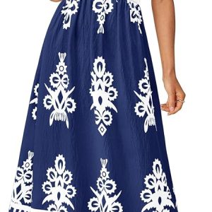Dokotoo Women Summer Dresses 2025 Spaghetti Strap Scoop Neck Smocked Ruffle Flowy Boho Maxi Dress