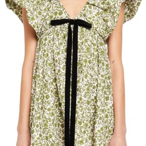 CUPSHE Women’s One Shoulder Leaf Print Self-tie Short Dress Sleeveless Tiered Hem Formal Dress Casual Mini Dress