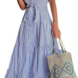 GUBERRY Womens Wrap V Neck Sleeveless Sundress Summer Flare Tank Dress with Pockets …