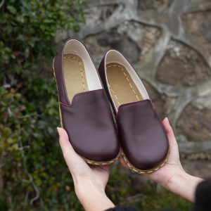 Burgundy Womens Grounding Shoes, Handmade Leather Barefoot Shoes, Zero-Drop, Wide Toe Box, Minimalist Loafers, Genuin Leather Shoes
