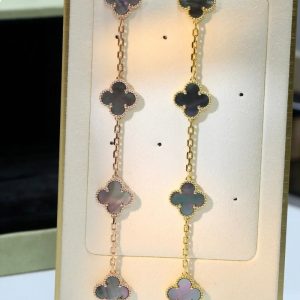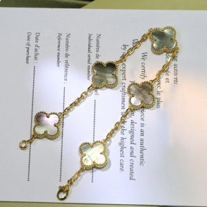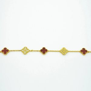 Add a touch of elegance to your wardrobe with our Clover Gold Bracelet. Crafted with five interlocking clover motifs, this bracelet is a timeless piece that will elevate any outfit. Its classic design makes it a versatile accessory for any occasion. Treat yourself or a loved one to this beautiful and meaningful piece.