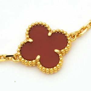 Indulge in elegance with our Clover Bracelet featuring 5 stunning blue agate motifs. This luxurious piece exudes exclusivity and sophistication, making it the perfect addition to your jewelry collection. Elevate your style with this intricate and unique bracelet.