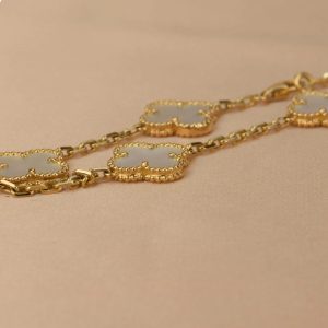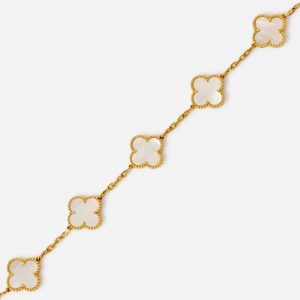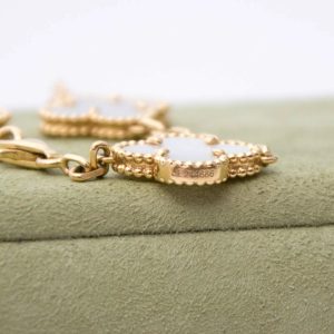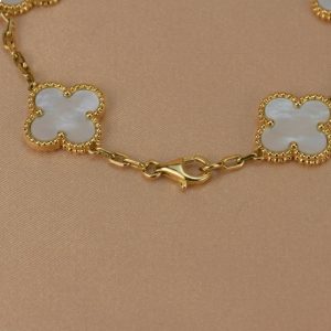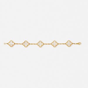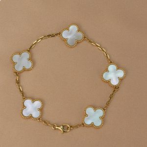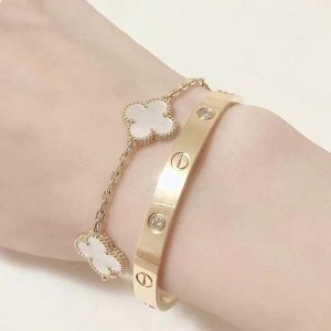 This charming Clover Bracelet showcases 5 stunning motifs in Carnelian Gold. The delicate design exudes elegance and sophistication, making it the perfect accessory for any occasion. Show off your style with this unique and versatile bracelet that effortlessly elevates any outfit.