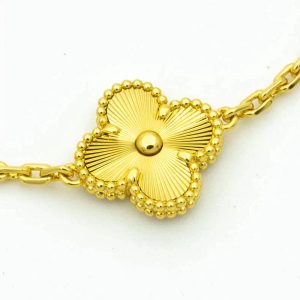Elevate your style with our stunning CLOVER BRACELET 5 MOTIFS WHITE MOP. Featuring delicate clover motifs made with premium white mother of pearl, this bracelet adds a touch of elegance to any outfit. Perfect for any occasion, it’s a must-have for any fashion-forward individual.