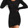 Missufe Women's Short Sleeve Ruched Casual Sundress Midi Bodycon T Shirt Dress